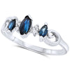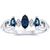 10k White Gold Marquise Blue Sapphire Gemstone and Diamond Promise Ring, Birthstone of September